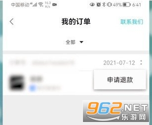 3、选择申请退款即可。