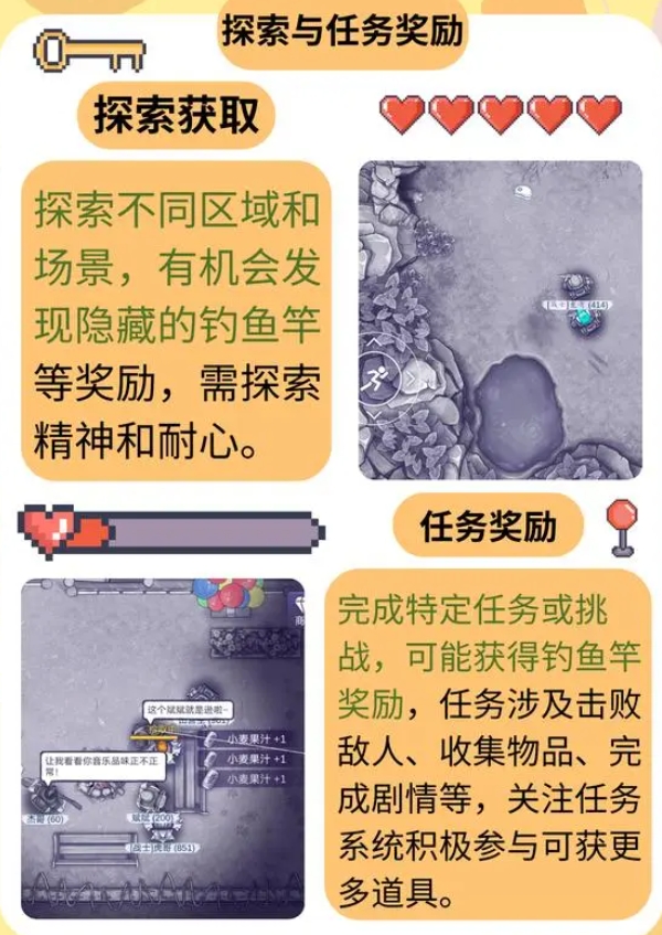 探索获取:在游戏中,玩家可以通过探索不同的区域和场景,有时会发现隐藏的钓鱼竿或其他奖励。这需要玩家具备一定的探索精神和耐心,但往往能带来意外的惊喜。