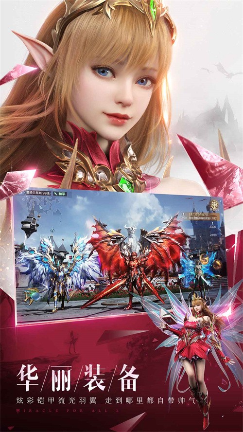 全民奇迹2带来了一个崭新的魔幻大世界即将开启,你的专属创世史诗静候开篇!全民奇迹2在传统3D游戏的基础上进行创新,通过融入自由飞行让奇迹世界变得更加波澜壮阔。真正实现漫步天使之城,与龙和精灵共舞,体验别样的奇迹世界!游戏真正实现全3D游戏模式,向不能看到天空的伪3D说NO