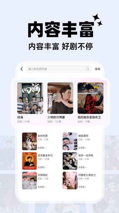 1、是一款主打短剧播放的软件,拥有丰富的短剧资源,涵盖多种题材类型。