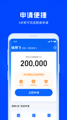 信用飞是一款专为用户提供便捷借款服务的金融软件,凭借身份证即可申请最高20万的信用额度,极大地满足了用户的资金需求。该软件采用纯线上操作模式,无需抵押和担保,审批速度快至30秒,最快3分钟即可到账,确保用户在急需资金时能够迅速获得支持。此外,信用飞的年化利率低至6.5%,为用户提供了经济实惠的借款选择,最长可分12期还款,灵活的还款方式让用户的财务管理更加轻松。通过与多家航空公司深度合作,信用飞还为用户提供了更广泛的金融服务选择。