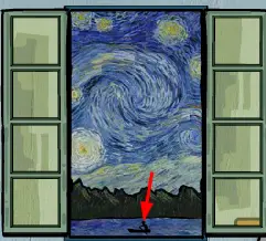 在《23号案件》第一章中,在墙上有一幅阿尔勒的卧室,当你把标签拿下来后,点击那扇窗,窗户就会打开显示1853